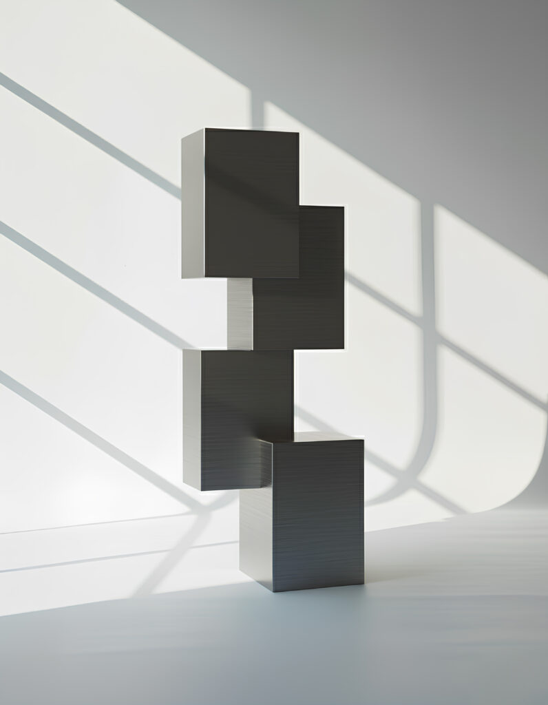 Con Monolys la geometria si trasforma in esperienza scultorea. Quattro blocchi d’acciaio si intrecciano in un equilibrio perfetto, dando vita a una composizione solida e allo stesso tempo sospesa.