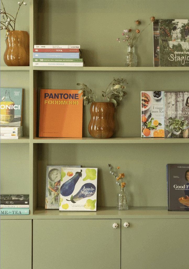 Il piano superiore ospita la sala da tè, la stanza dei dolci e la sala eventi con tavolo conviviale. Verde lichene, terracotta, luci soffuse, profumi naturali e suoni ambientali costruiscono un’atmosfera calda e avvolgente. Materiali materici, velluti e superfici morbide evocano una casa accogliente dove il tempo rallenta realmente.