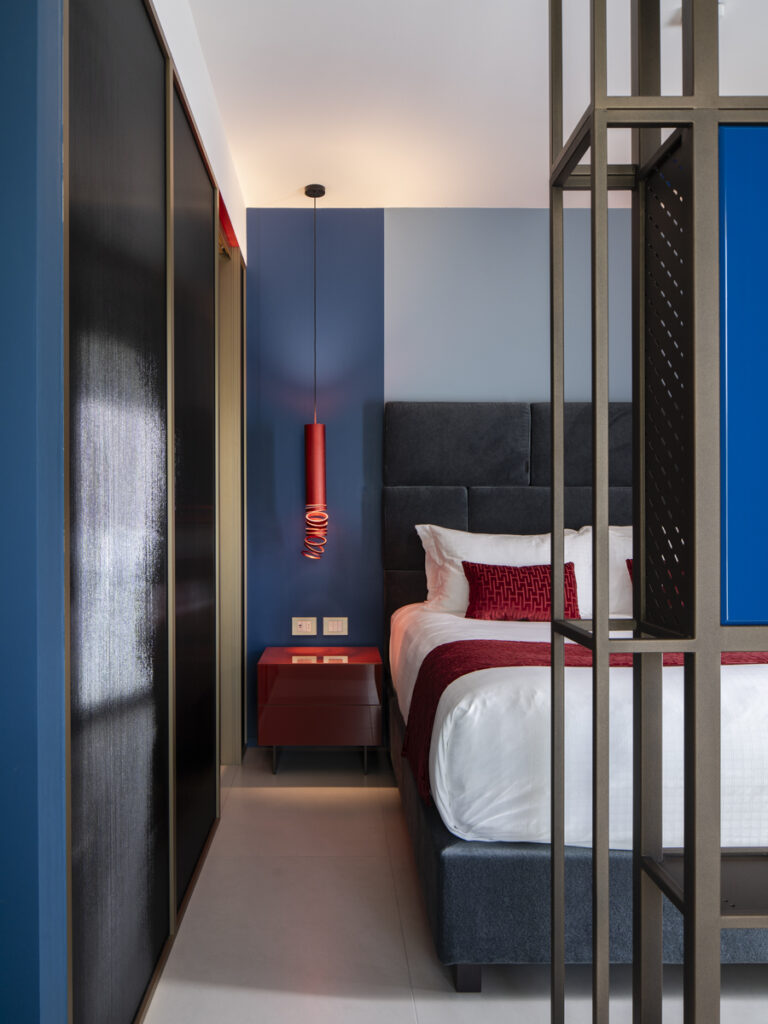 Every color in ONIRICA tells a story. Navy blue evokes depth and calm, ruby red conveys energy, cerulean brings serenity and lightness, while gold accents illuminate spaces, amplifying elegance. The palette transforms the suite into an emotive environment where color guides mood and experience.
