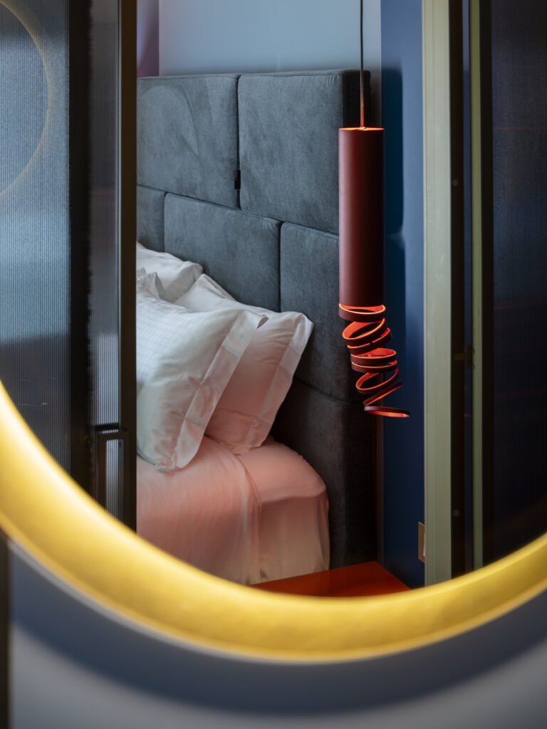 ONIRICA welcomes guests with a sensory journey of imaginative lighting, playful perspectives, and scenographic details. The suite blurs the line between dream and reality, creating a narrative environment where each element surprises and engages visitors.
